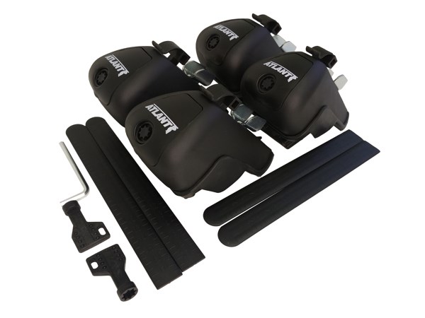 Комплект опор тип D арт. 8811 поставляется в картонной коробке, где размещены четыре собранные опоры и пакетик с двумя ключами для замка-секретки, Г-образным ключом для установки багажника и четырьмя крышками опоры.