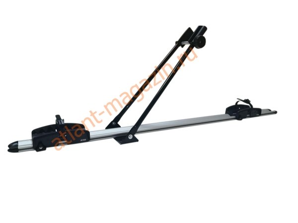Основа велокрепления - опорная алюминивая балка. С передней и задней части балка закрыта пластиковыми заглушками, улучшающими аэродинамику изделия и предотвращающими шум. К балке присоединена стальная плошадка, предназначенная для опоры и закрепления изделия на передней поперечине багажника. К прощадке прочными винтами присоединяются стальные держатели рамы. Рама велосипеда фиксируется путем затягивания барашка на держателях. Пластиковые держатели рамы с резиновыми прокладками надежно удерживают велосипед в вертикальной плоскости.